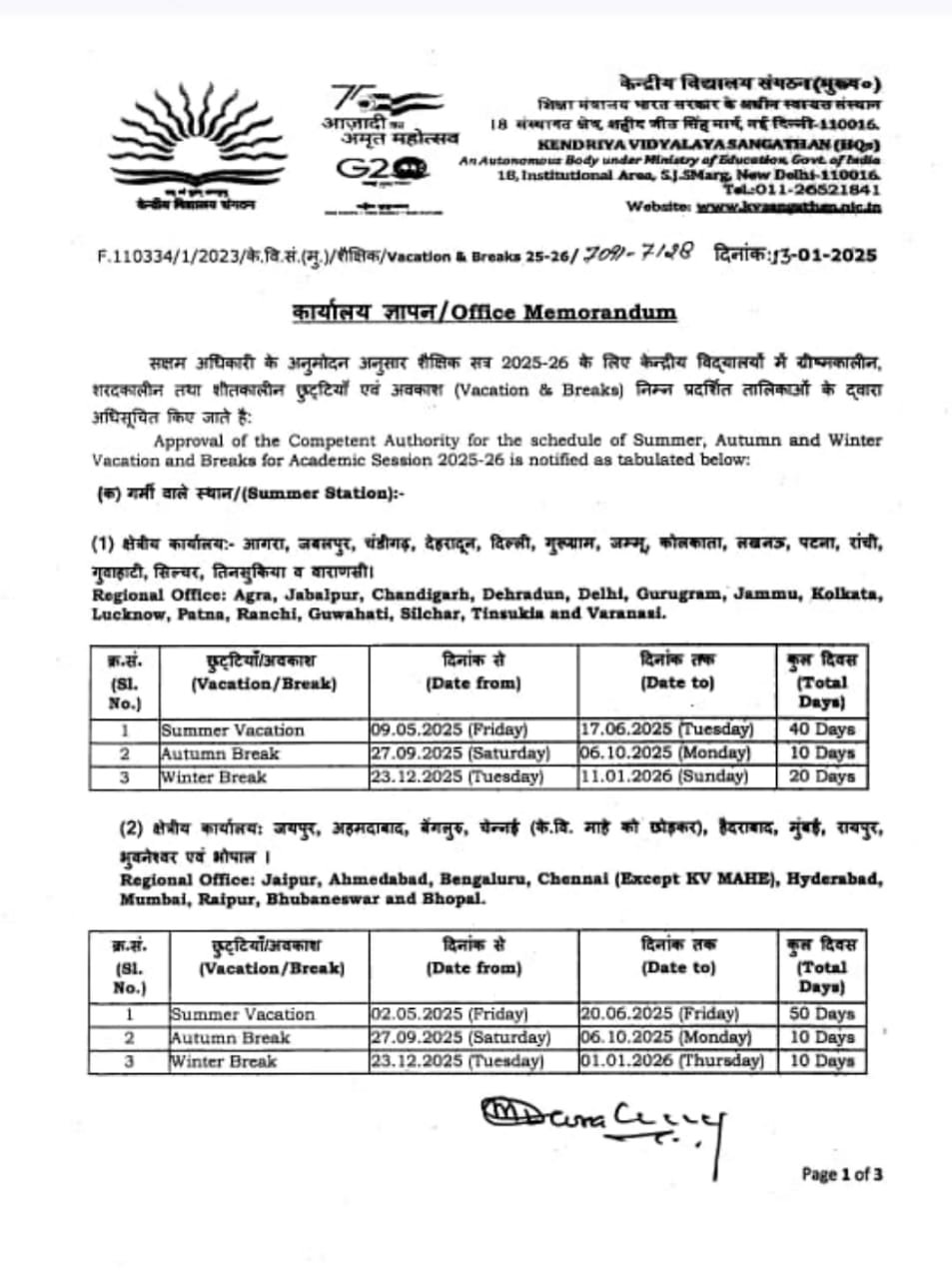 जारी शेड्यूल के अनुसार यूपी में संचालित केंद्रीय विद्यालय में 23 दिसंबर 2025 से शीतकालीन अवकाश की शुरुआत हो रही है यह अवकाश 11 जनवरी 2026 तक रहने वाला है इस बीच छात्रों के साथ-साथ शिक्षण कार्य से जुड़े सभी स्टाफ और शिक्षक गण को भी अवकाश का लाभ मिलने वाला है शीतकालीन अवकाश के बाद सभी स्कूलों को 12 जनवरी 2026 को खोला जाएगा अगर मौसम की स्थिति ठीक नहीं रहती है और अत्यधिक कोहरा और ठंड की स्थिति बनी रहती है तो अवकाश में बदलाव की संभावना की जा रही है।